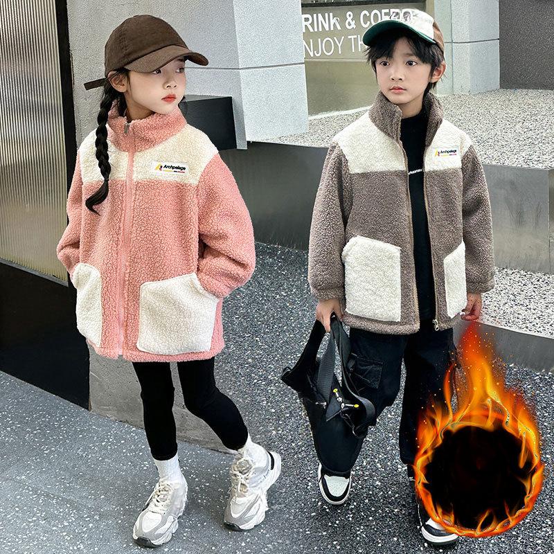 Детское бархатное пальто Модное и повседневное для девочек и мальчиков Толстое Среднего размера Детское осенне-зимнее Пальто из гранулированного бархата