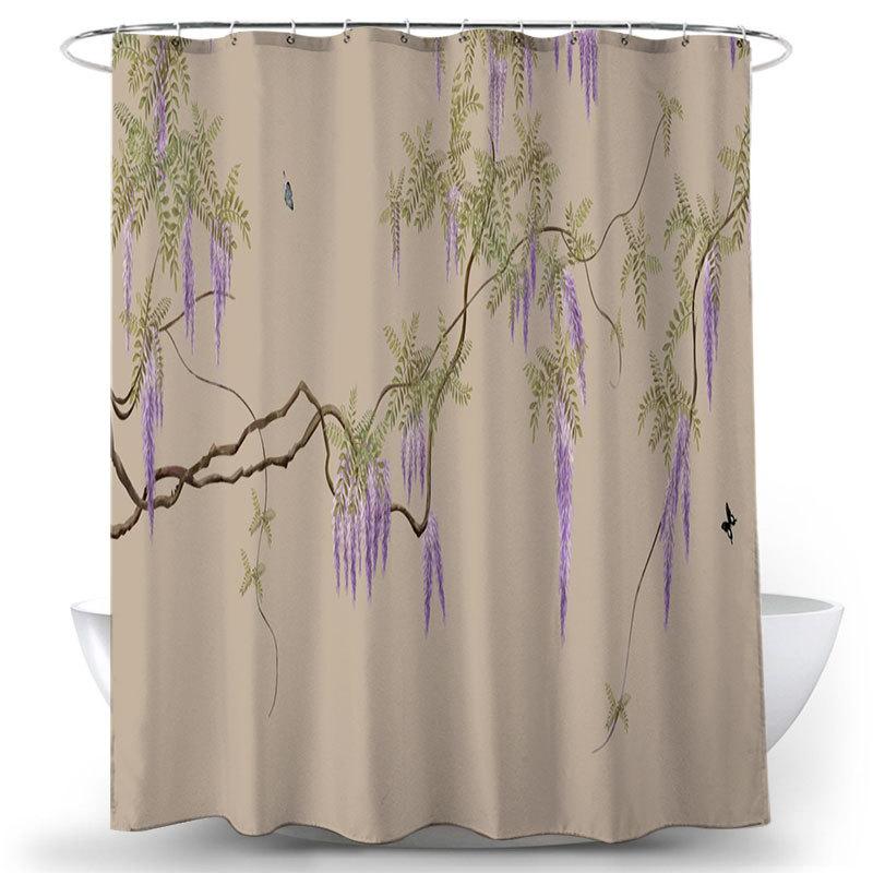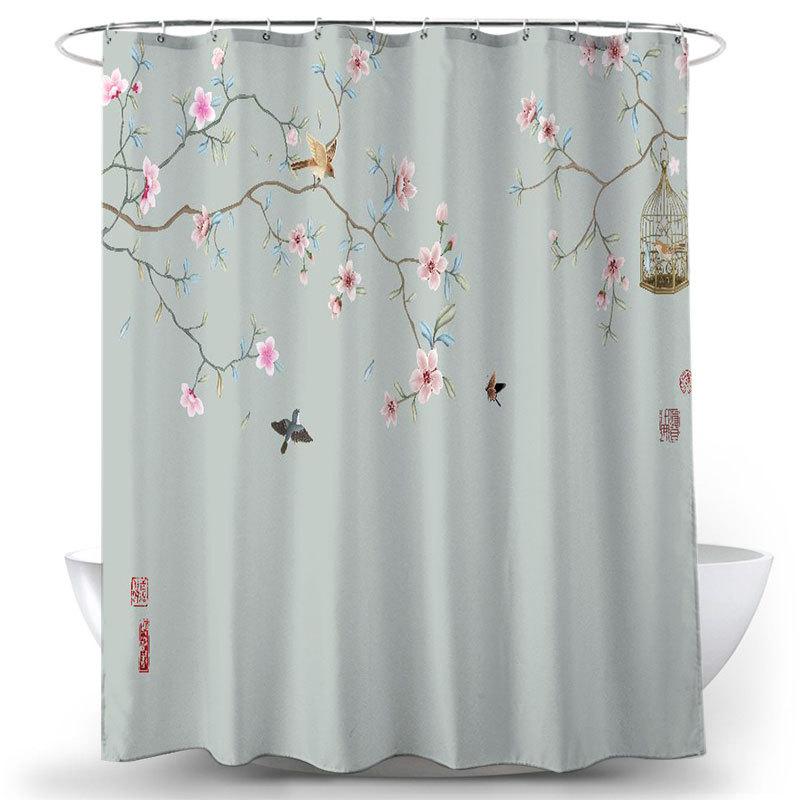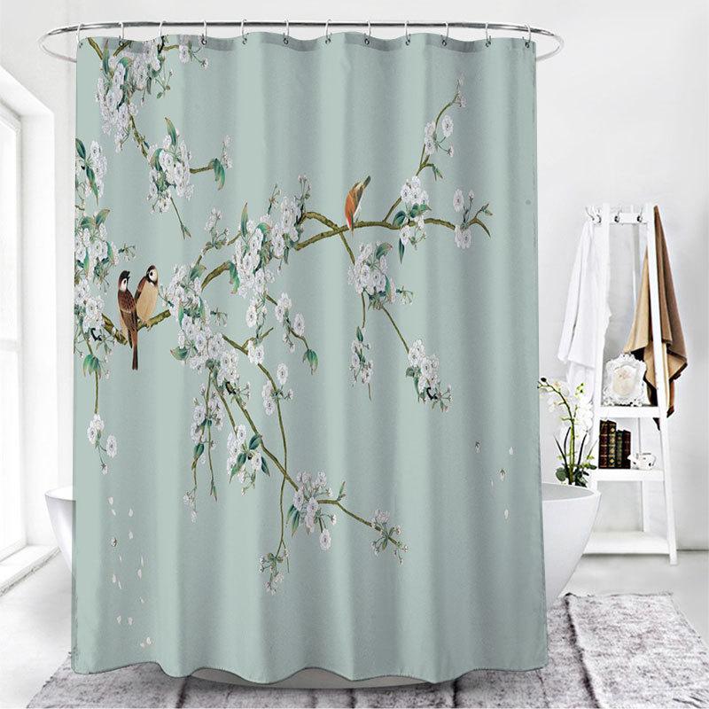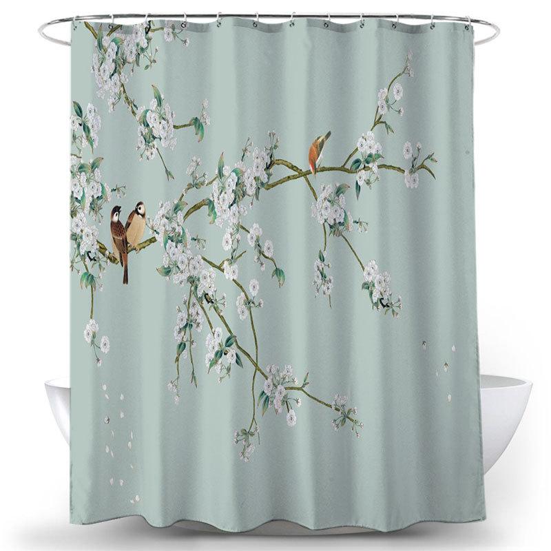 Занавеска для душа с цветами и птицами, водонепроницаемая, декоративная для ванной комнаты, тканевая с 3D-печатью, декоративная занавеска для душа cortina de la ducha