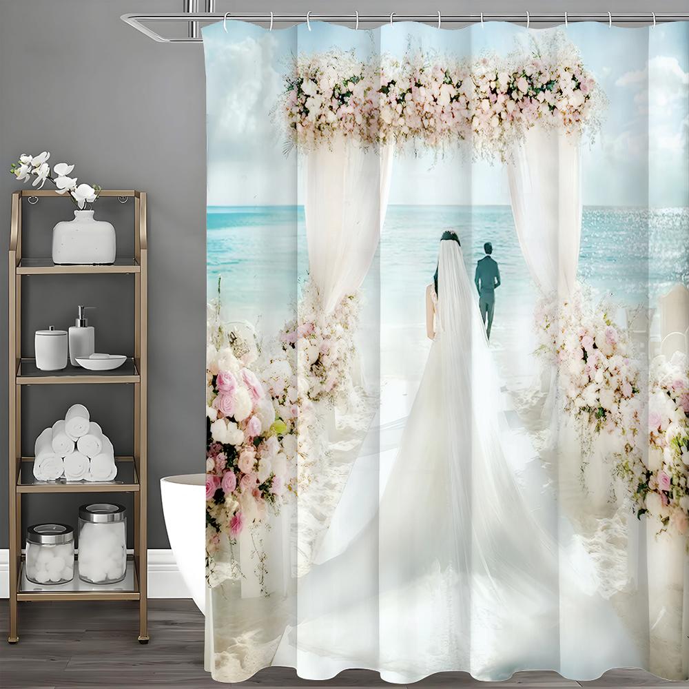 Приморская Свадьба Океан Цветок Занавеска для душа, Декоративная занавеска для душа для ванной комнаты, Водонепроницаемая занавеска для душа с крючками