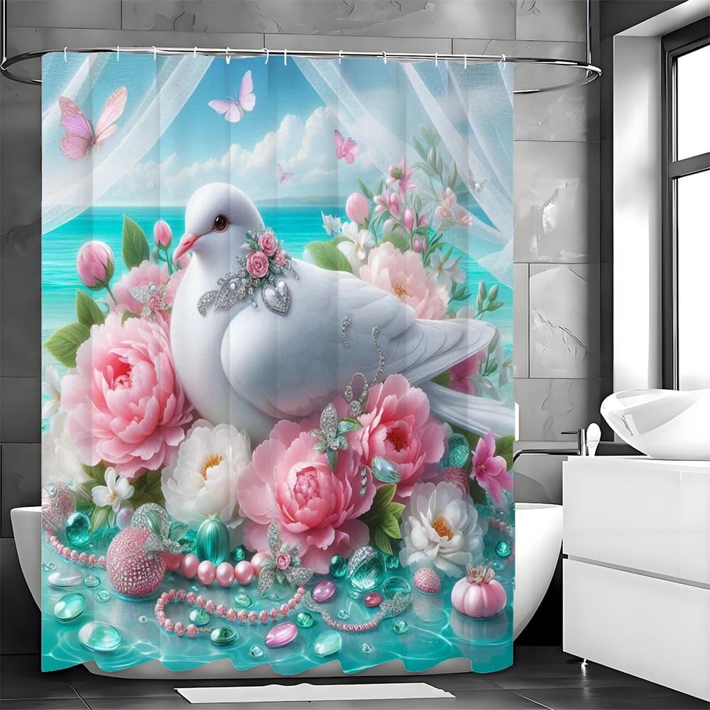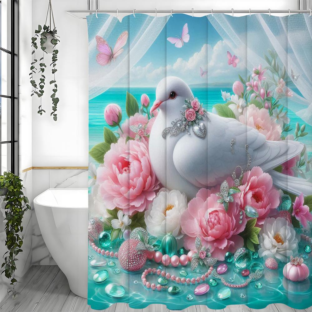 Креативная шторка для душа с цветочным жемчугом White Dove, декоративная шторка для ванной, водонепроницаемая шторка для душа с крючками