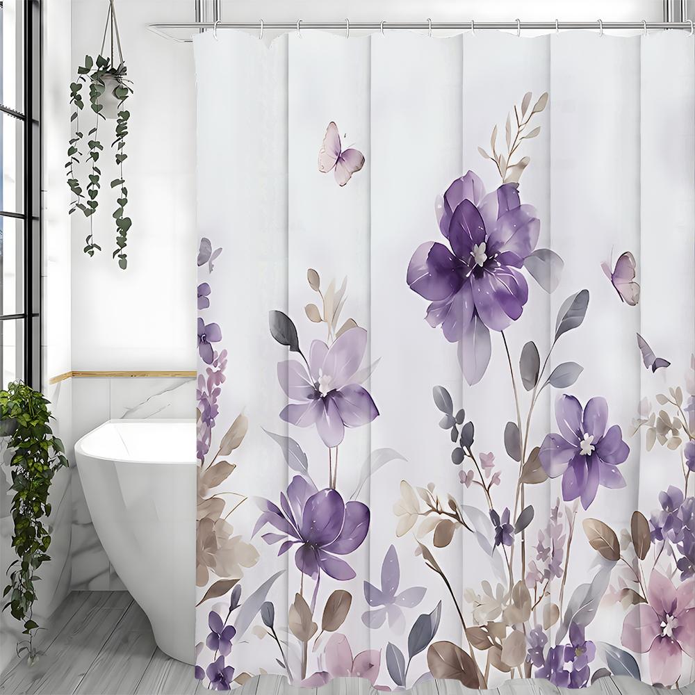 Фиолетовая мятая шторка для душа, абстрактная акварельная цветочная ботаническая бабочка, деревенский фермерский дом, декоративная шторка для душа для ванной