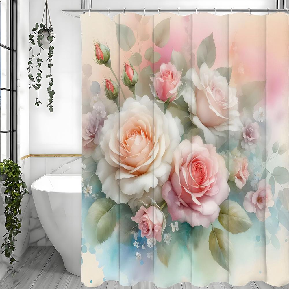 Весенняя роза, занавеска для душа, декоративная занавеска для ванной комнаты, водонепроницаемая занавеска для душа с крючками