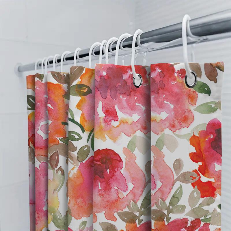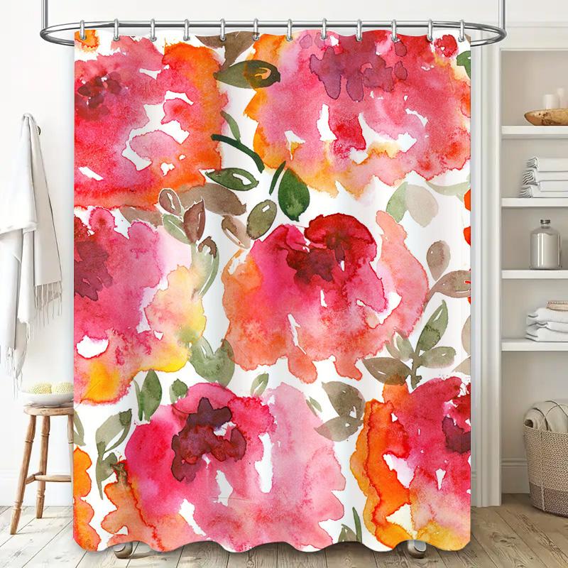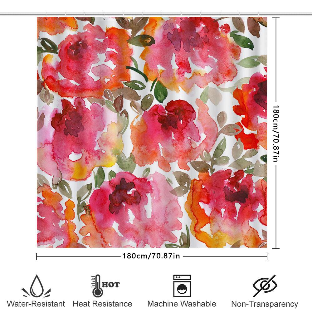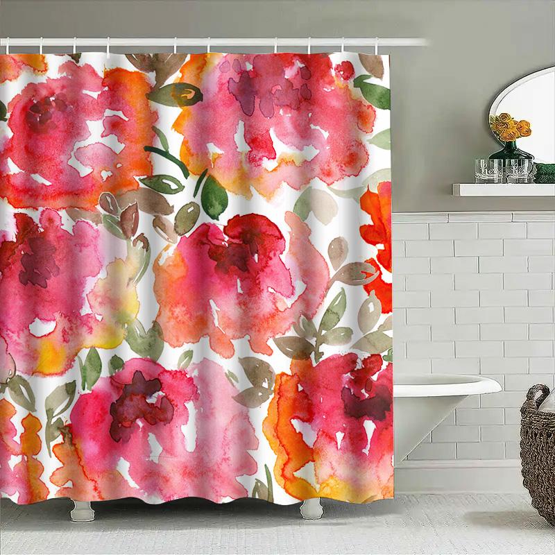 Акварельная цветочная шторка для душа розовая красная оранжевая белая с листьями дизайн для декора ванной комнаты современное украшение дома 69x72 дюйма (175