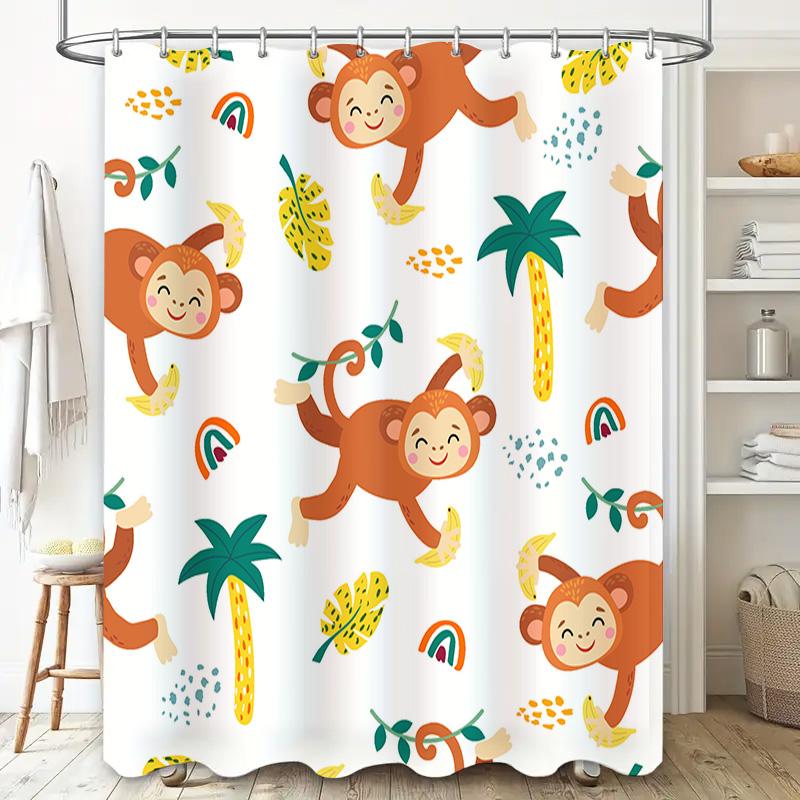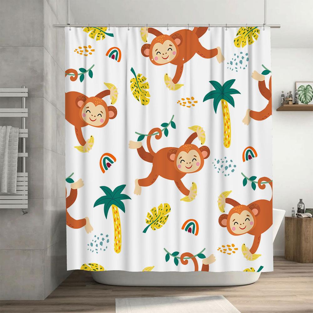 Шторка для душа на тему животных с мультяшными обезьянками, красочный современный дизайн для декора ванной комнаты для детей или взрослых