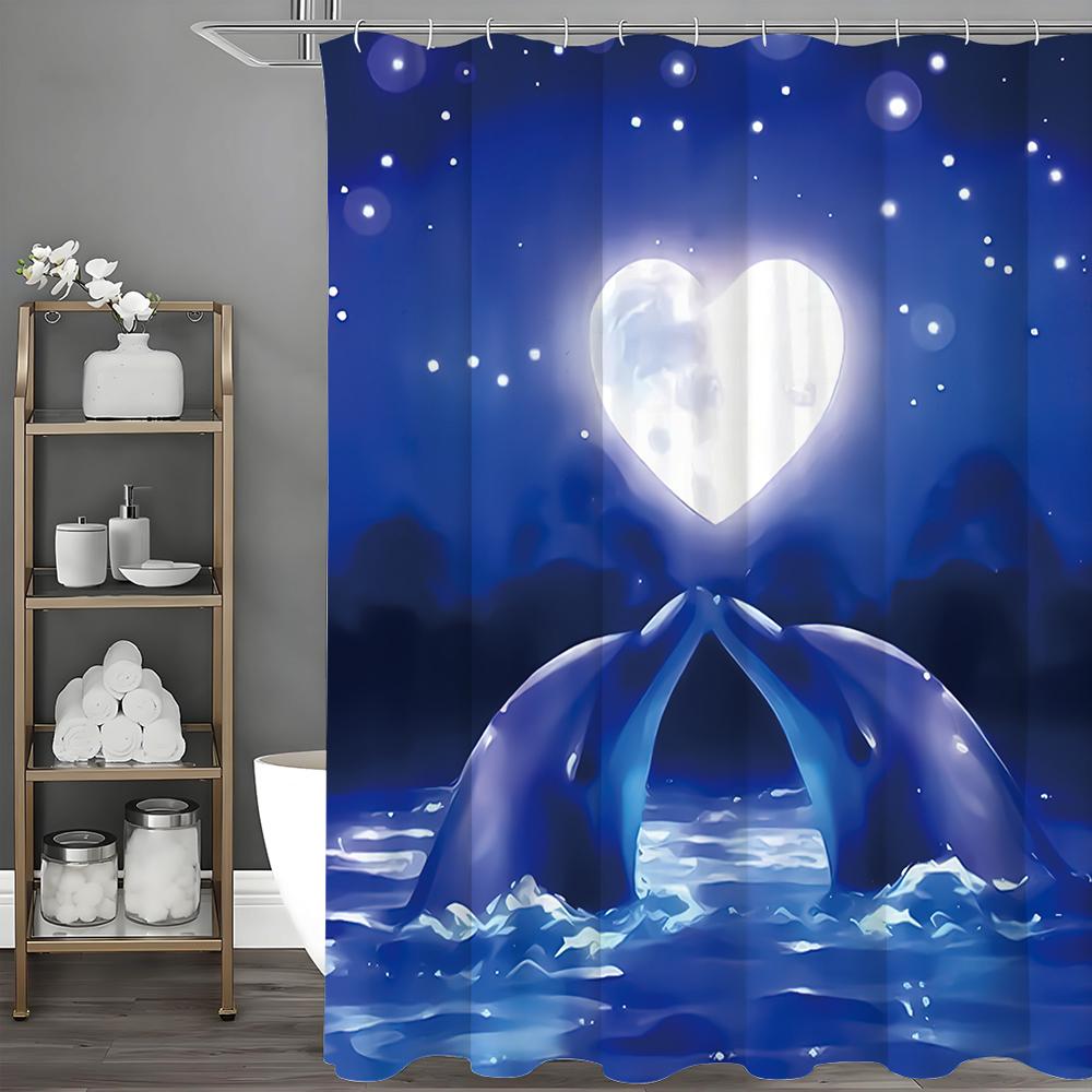 День Святого Валентина Любовь Луна Дельфин Занавеска для душа, Декоративная занавеска для душа для ванной, Водонепроницаемая занавеска для душа с крючками