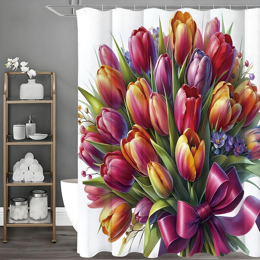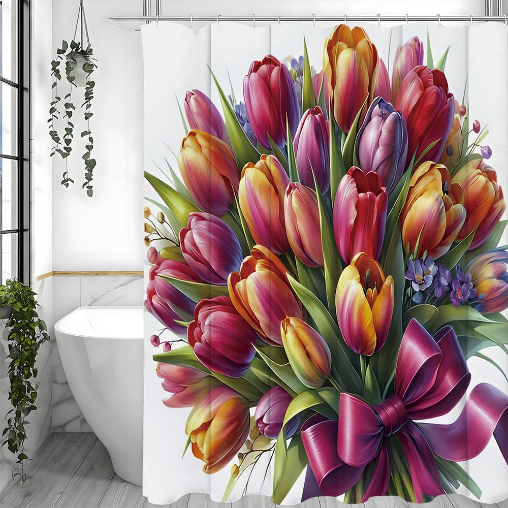 Шторка для душа «Букет тюльпанов», Декоративная шторка для душа для ванной комнаты, Водонепроницаемая шторка для душа с крючками