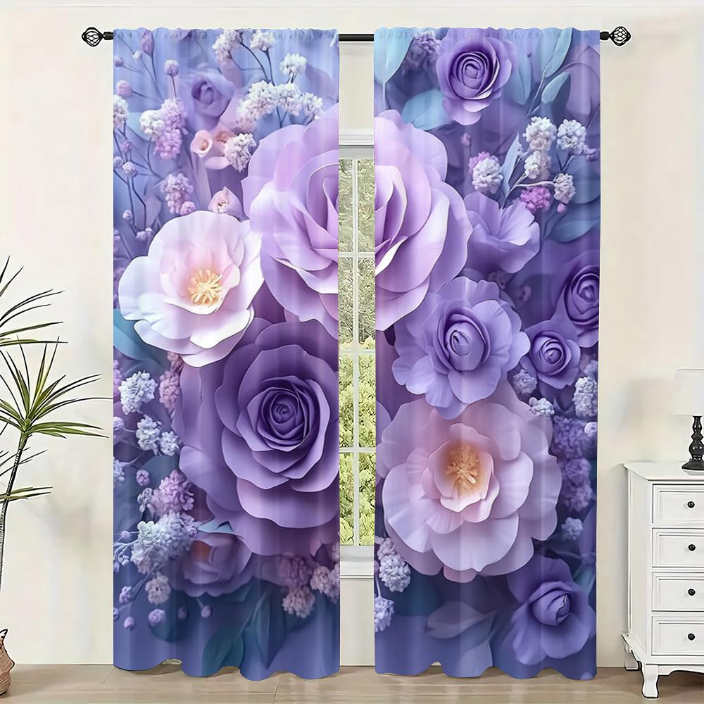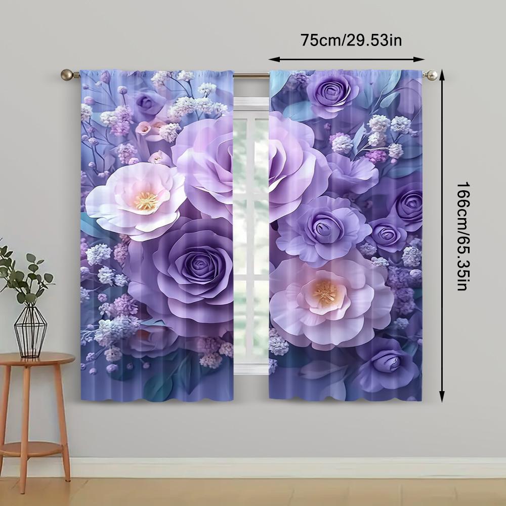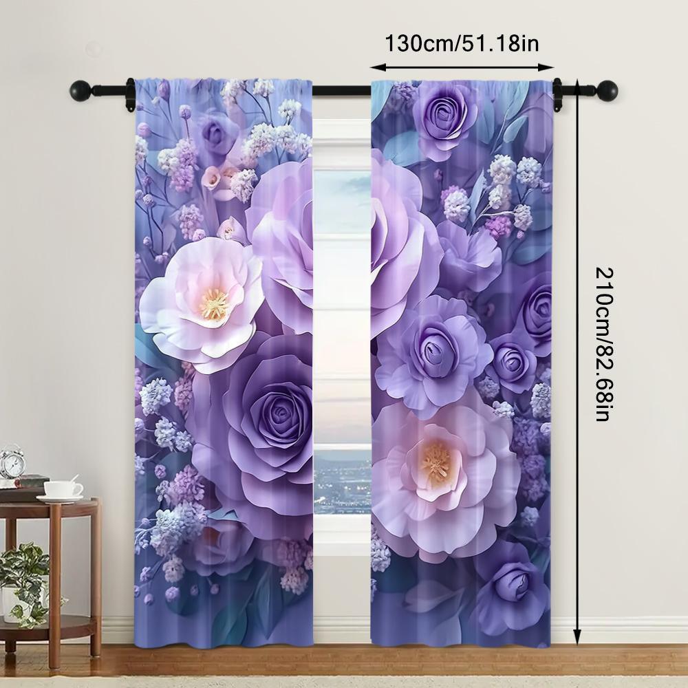 2 шт., Штора Большая Фиолетовая Цветочная Блэкаут Полиэстер Праздничный Декор Стены Использовать для Праздничных Вечеринок