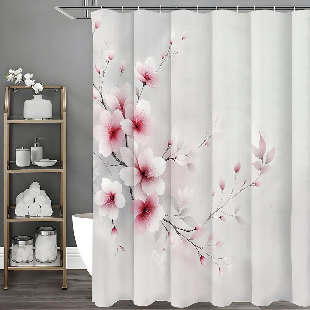 Занавеска для душа «Цветущий персик», Декоративная занавеска для душа для ванной комнаты, Водонепроницаемая занавеска для душа с крючками
