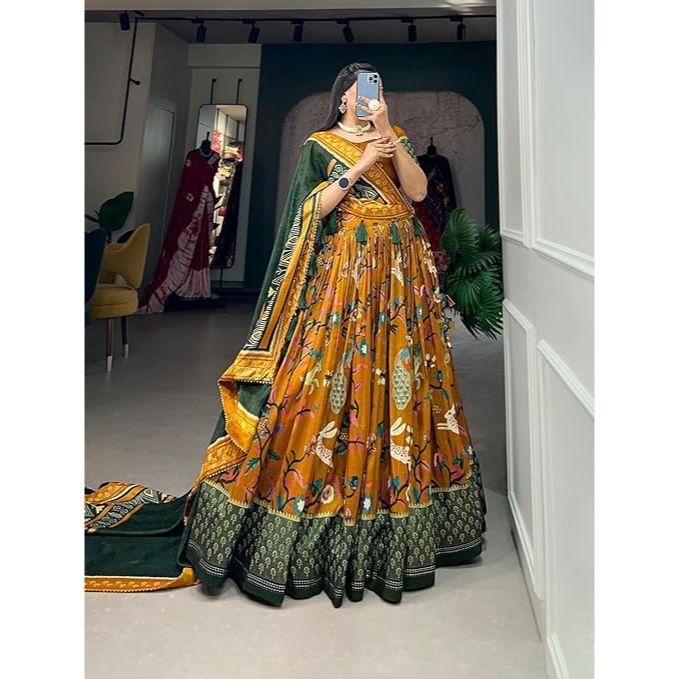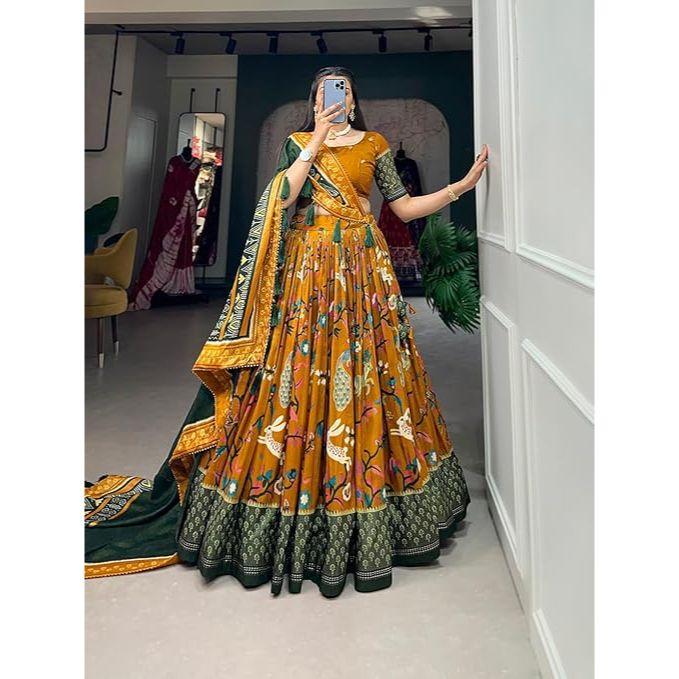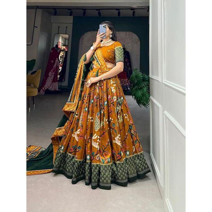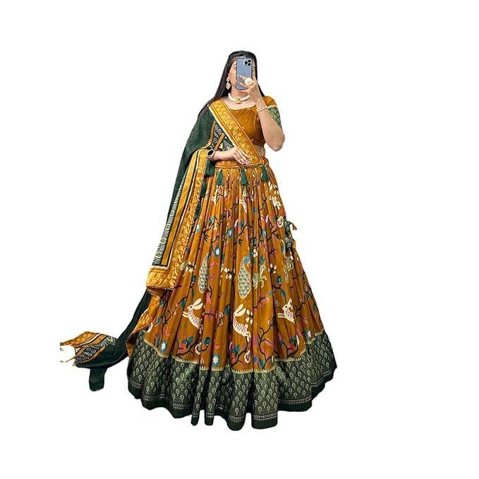 Женская коллекция 'perfectly' Лехенга-чоли из туссарового шелка с принтом Патола и фольгированной отделкой, Несшитая блузка,