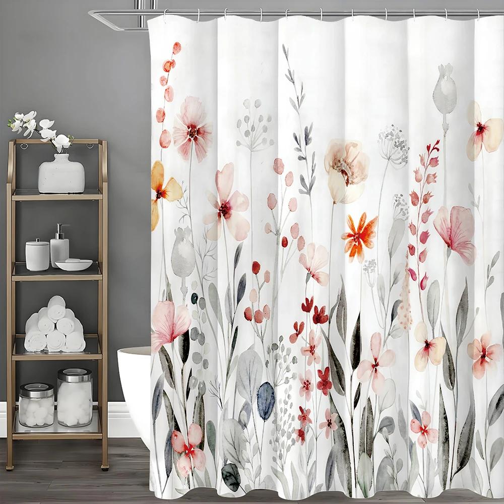 Весенний цветочный растительный занавес для душа, декоративный занавес для душа для ванной комнаты, водонепроницаемый занавес для душа с крючками, подходит для ванной комнаты