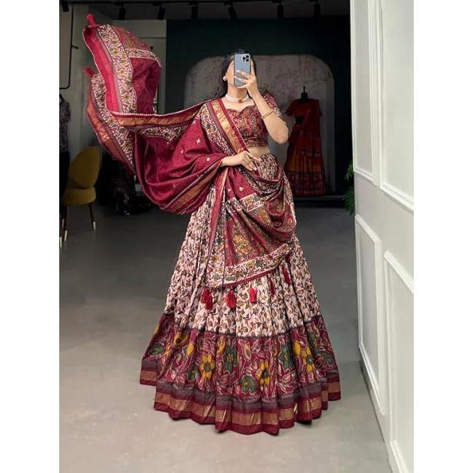 Женская коллекция 'perfectly' Лехенга-чоли из туссарового шелка с принтом Патола и фольгированной отделкой, Несшитая блузка, — купить товар онлайн с бесплатной доставкой до всему миру!