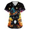 Женский топ защитного костюма с V-образным вырезом, с короткими рукавами, с принтом на Хэллоуин, с карманом и боковыми разрезами