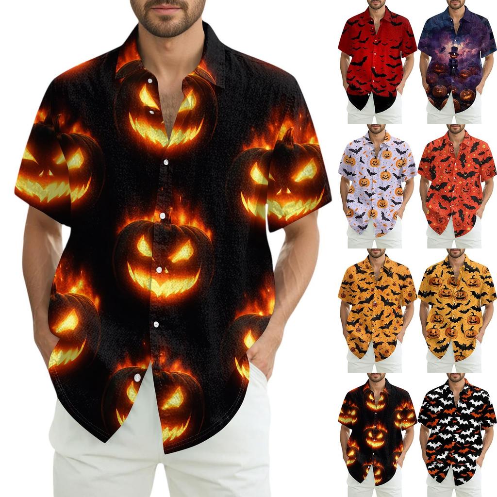 Мужская модная повседневная рубашка с коротким рукавом свободного кроя с принтом на Хэллоуин — купить товар онлайн с бесплатной доставкой по всему миру!