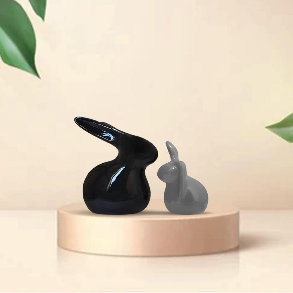 Керамические фигурки кроликов для домашнего декора (Набор из 2 шт., черный и серый)