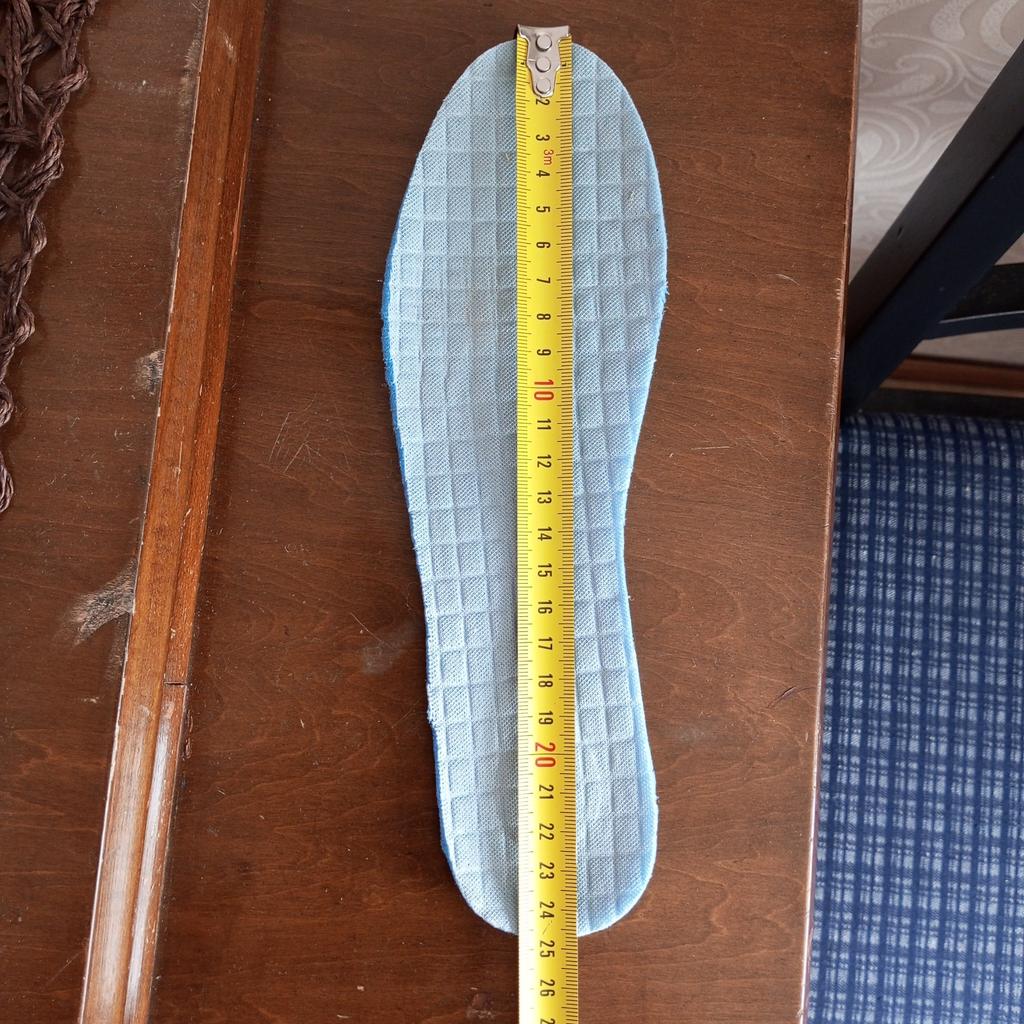 Кросовки из материала типа плотной клеёнки.Прошиты на вид хорошо. Подошва плотная пружинит ,не скользит . По стельке 24,5см. Я ношу российский 38( стопа 24.5) Глубокие ,вставила три стельки- норм. То есть подойдут и на полную ножку.