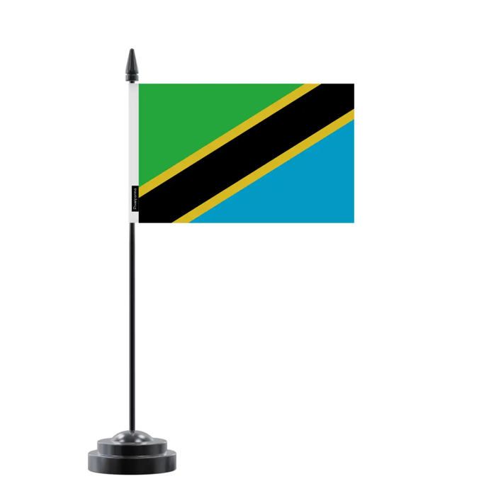 Настольный флаг Танзании – 14 x 21 см – Полиэстер – Черная пластиковая подставка – Pixelforma