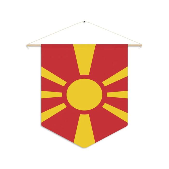 Fanion – Drapeau de la Macédoine du Nord – 30 x 45 cm – Polyester – À Suspendre – Pixelforma