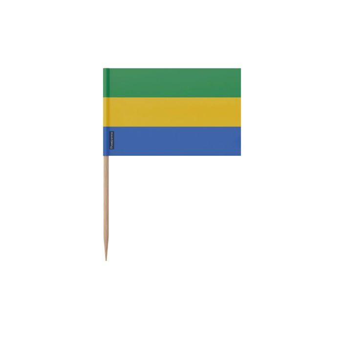 Cure-dents Drapeau du Gabon - 10 cm - 100 pièces - Plastique adhésif - Bâton en bambou - Pixelforma
