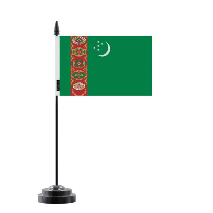 Drapeau de Table du Turkménistan – 14 x 21 cm – Polyester – Socle en Plastique Noir – Pixelforma