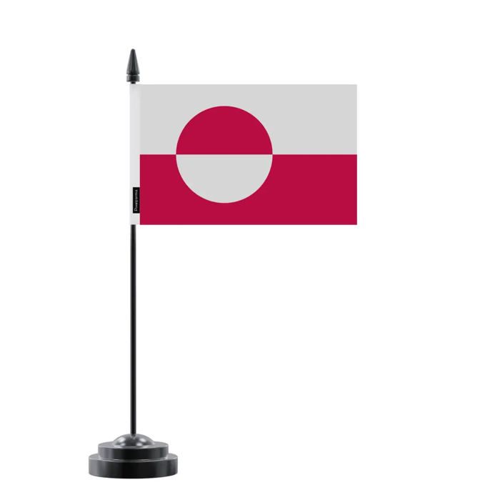 Drapeau de Table du Groenland – 14 x 21 cm – Polyester – Socle en Plastique Noir – Pixelforma