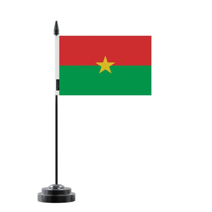 Drapeau de Table du Burkina Faso – 14 x 21 cm – Polyester – Socle en Plastique Noir – Pixelforma