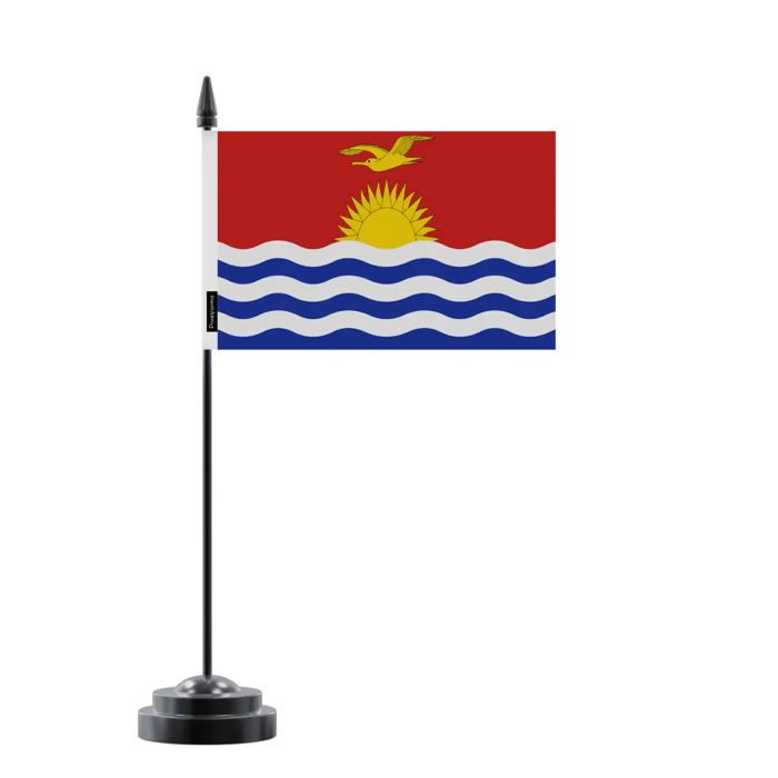 Drapeau de Table des Kiribati – 14 x 21 cm – Polyester – Socle en Plastique Noir – Pixelforma