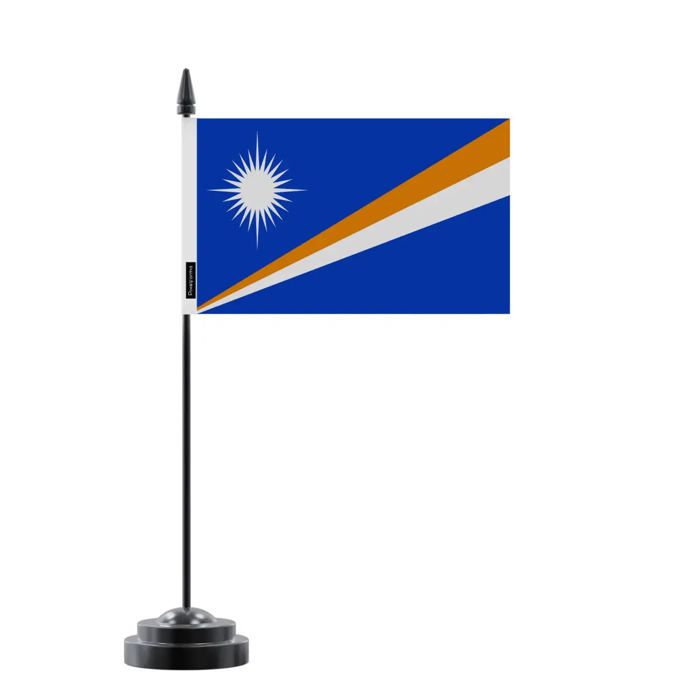 Drapeau de Table des Îles Marshall – 14 x 21 cm – Polyester – Socle en Plastique Noir – Pixelforma