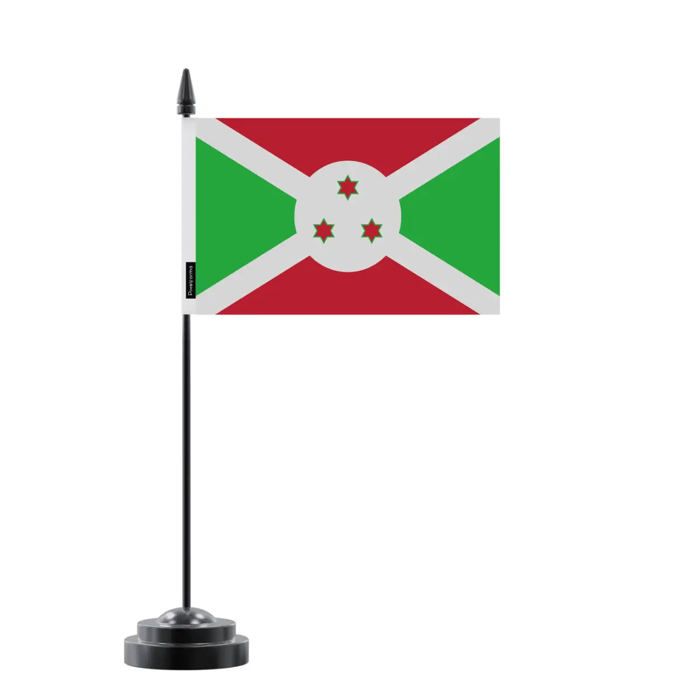 Drapeau de Table du Burundi – 14 x 21 cm – Polyester – Socle en Plastique Noir – Pixelforma