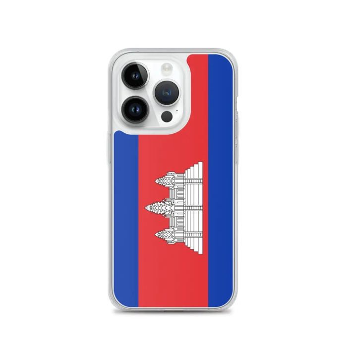 Coque Téléphone – Drapeau du Cambodge – Compatible iPhone 14 Pro – Étui Souple – Résistant et Antichoc - Silicone - Pixelforma