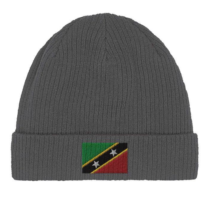 Bonnet en Coton – Drapeau de Saint-Christophe-et-Niévès – Broderie – Gris
