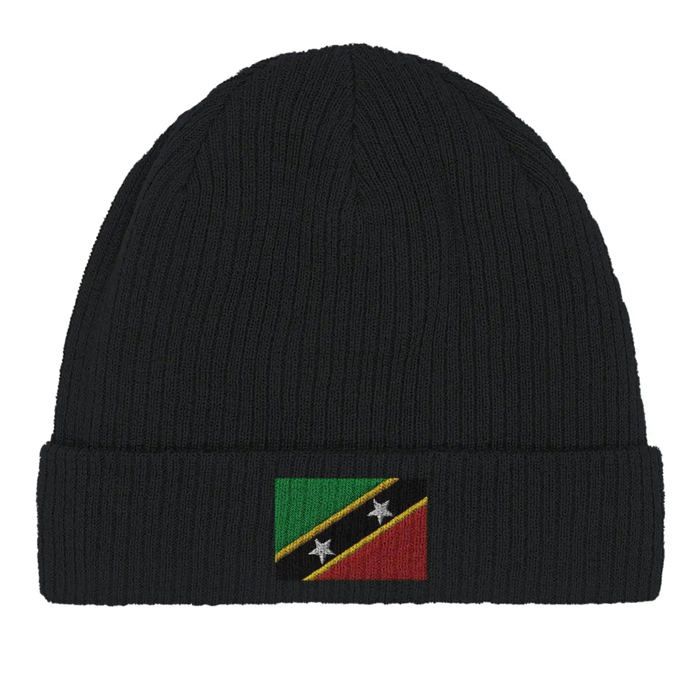 Bonnet en Coton – Drapeau de Saint-Christophe-et-Niévès – Broderie – Noir