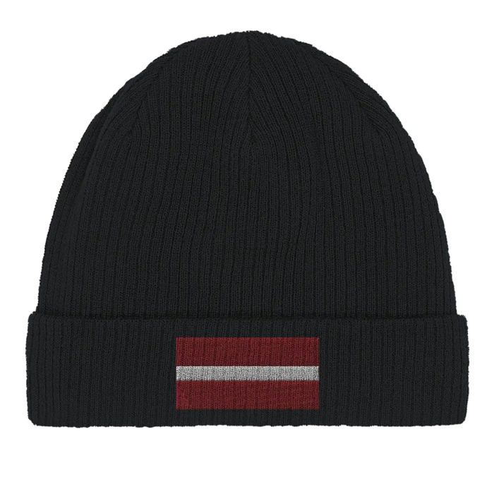Bonnet en Coton – Drapeau de la Lettonie – Broderie – Noir