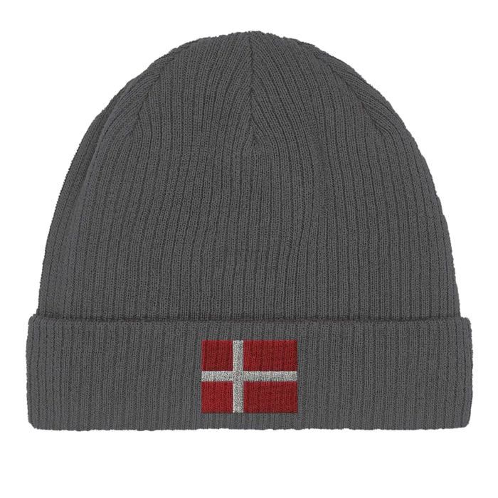 Bonnet en Coton – Drapeau du Danemark – Broderie – Gris