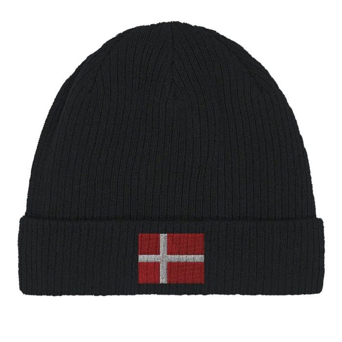 Bonnet en Coton – Drapeau du Danemark – Broderie – Noir