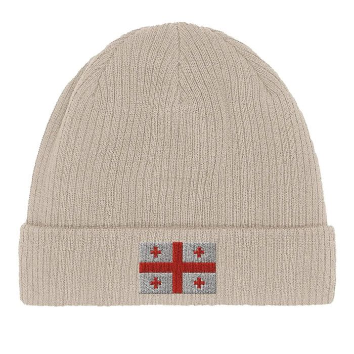 Bonnet en Coton – Drapeau de la Géorgie – Broderie – Beige