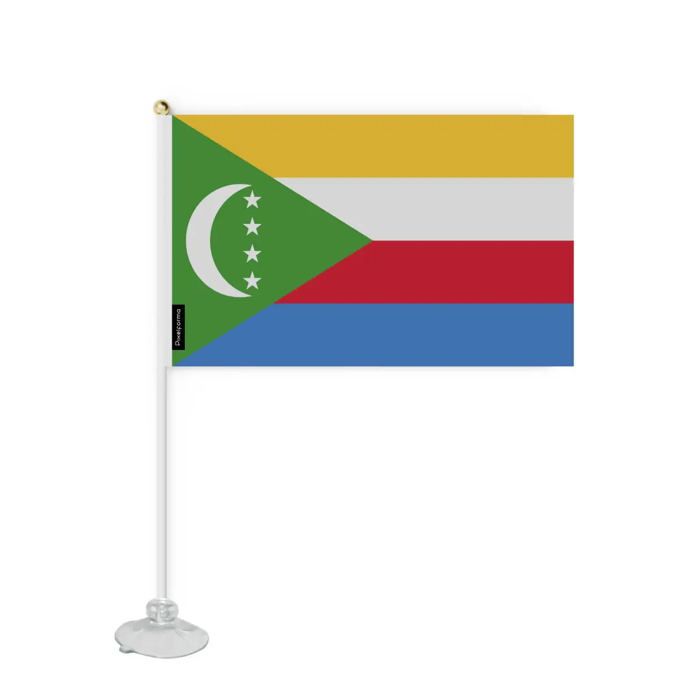 Mini Drapeau des Comores – Ventouse – 14 x 21 cm – Pour Surface Lisse – Polyester – 1 pièce – Pixelforma