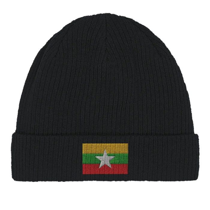 Bonnet en Coton – Drapeau de la Birmanie – Broderie – Noir
