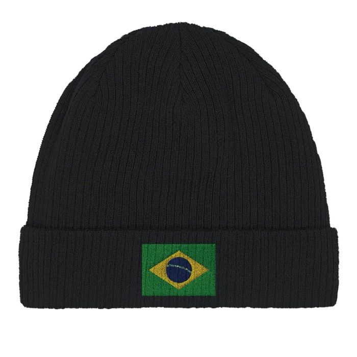 Bonnet en Coton – Drapeau du Brésil – Broderie – Noir