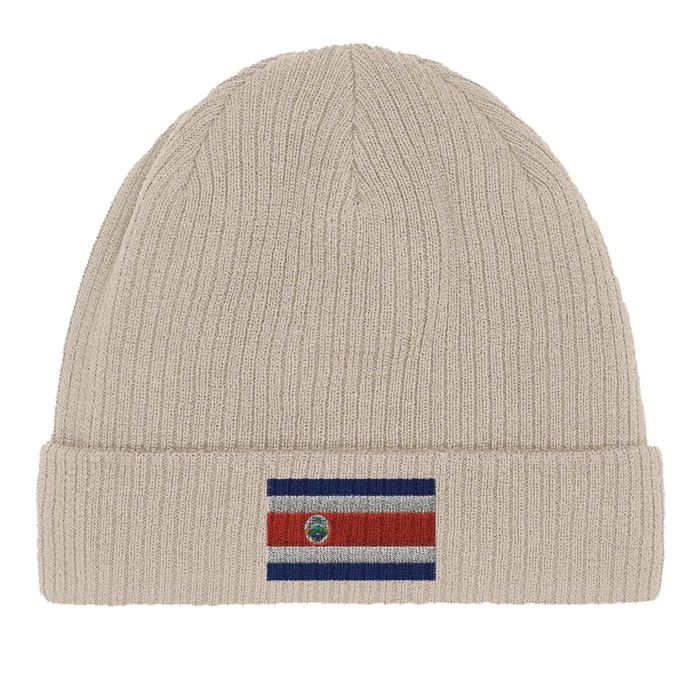 Bonnet en Coton – Drapeau du Costa Rica – Broderie – Beige