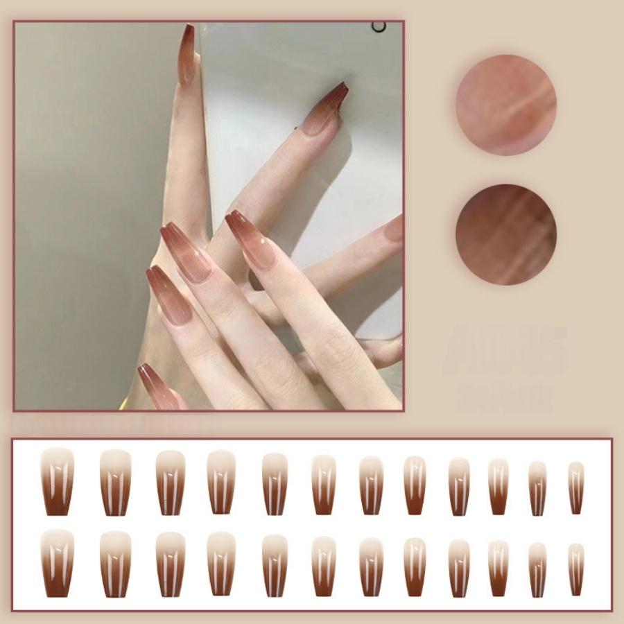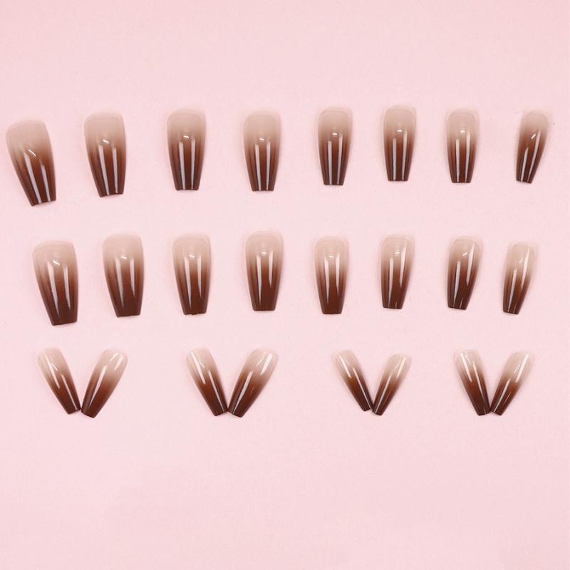 24 шт./уп. Коричневый градиент Носимые ногти Стиль горячей девушки Хаки Кофейный цвет Накладные ногти Средней длины Многоразовые Носимые ногти