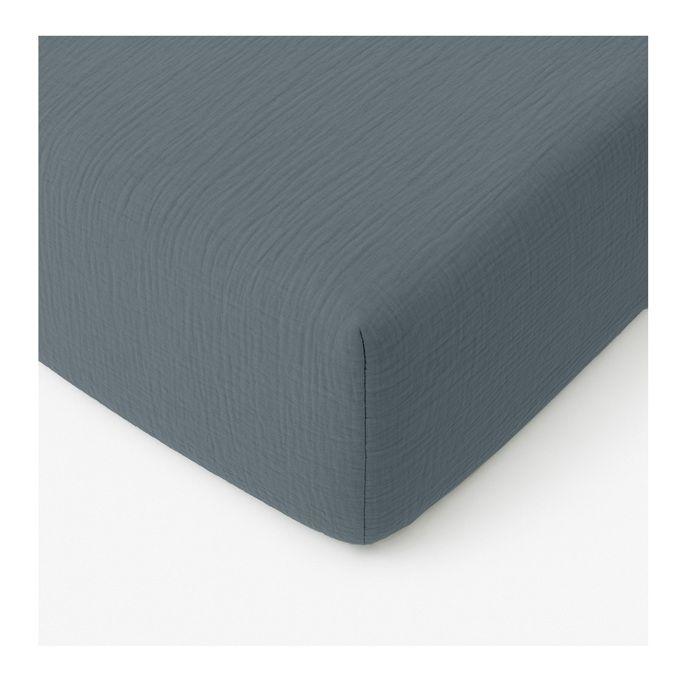 Drap-housse - 140 x 190 cm - Gaze de coton lavé - Bleu foncé - Bonnet 30 cm — купить товар онлайн с бесплатной доставкой по всему миру!
