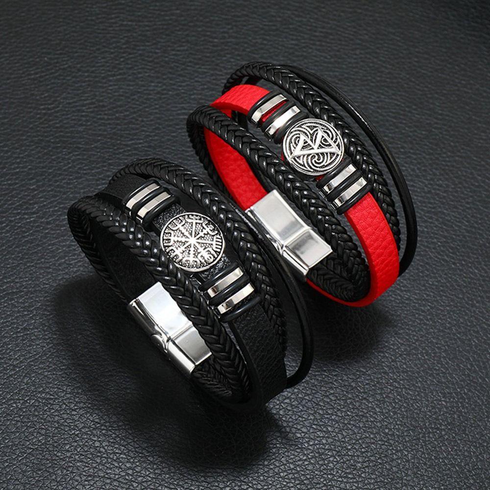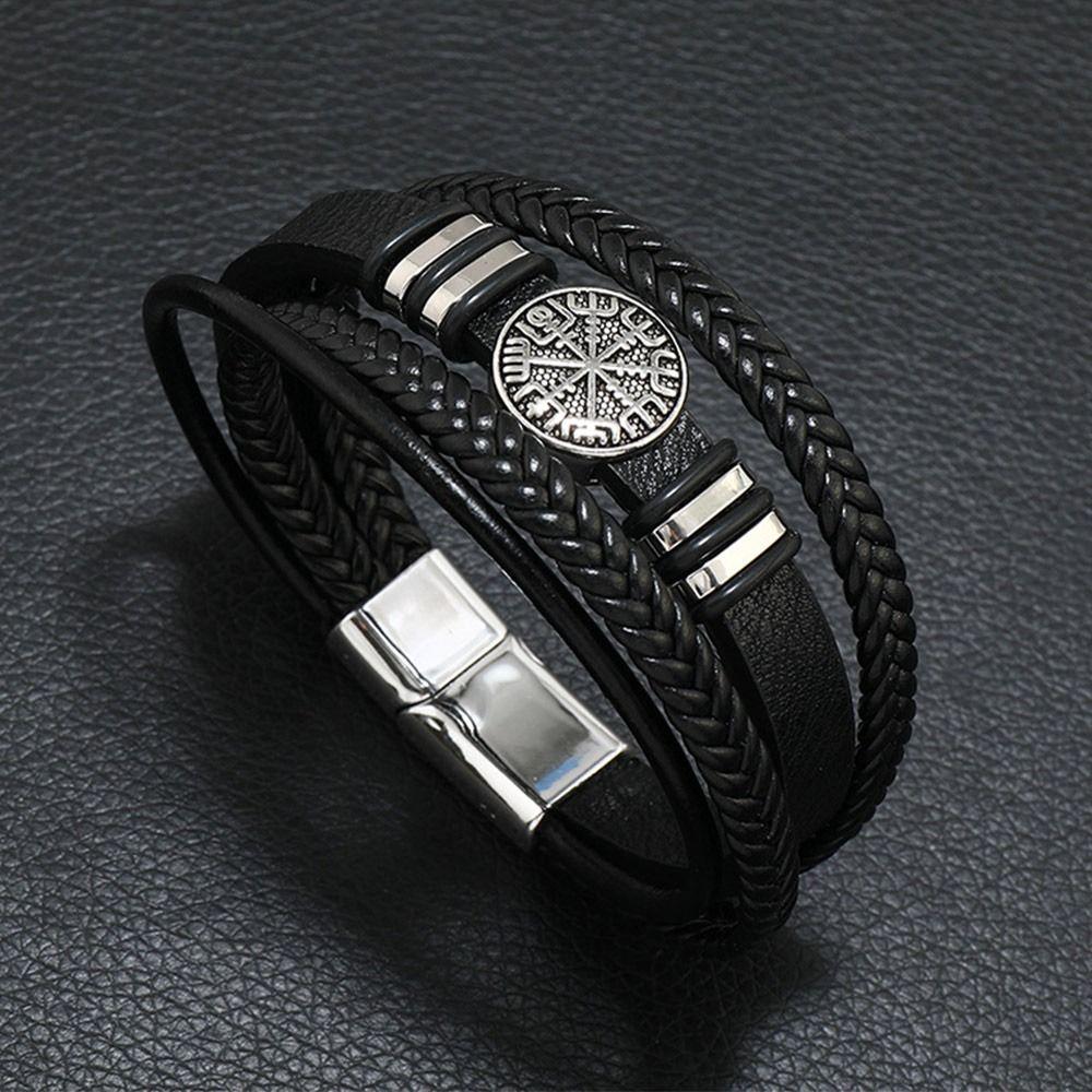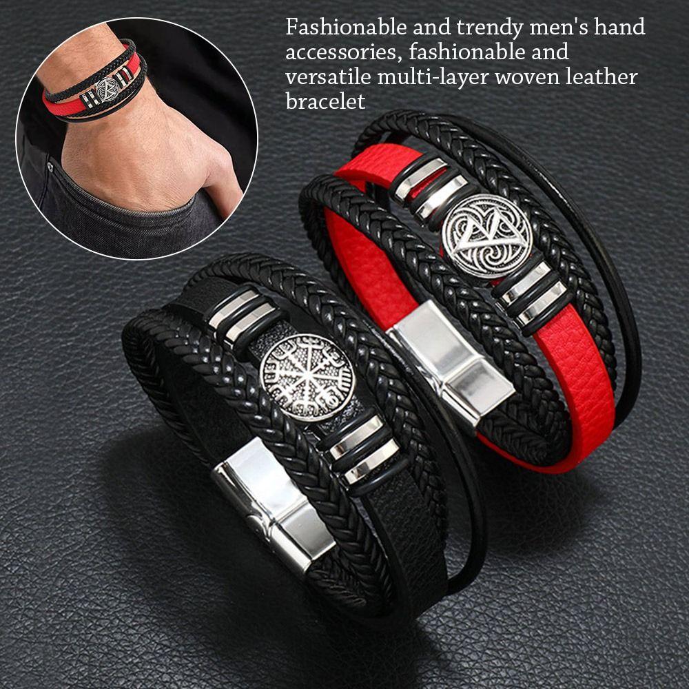 Многослойный кожаный браслет с магнитной пряжкой, ювелирные изделия на запястье, новый плетеный браслет-цепочка для мужчин