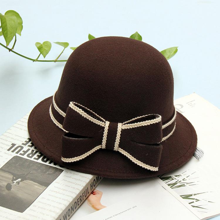 Ретро Шляпа-бант Женская Осенне-зимняя Теплая Модная Шляпа-цилиндр Британская Шляпа-ведро