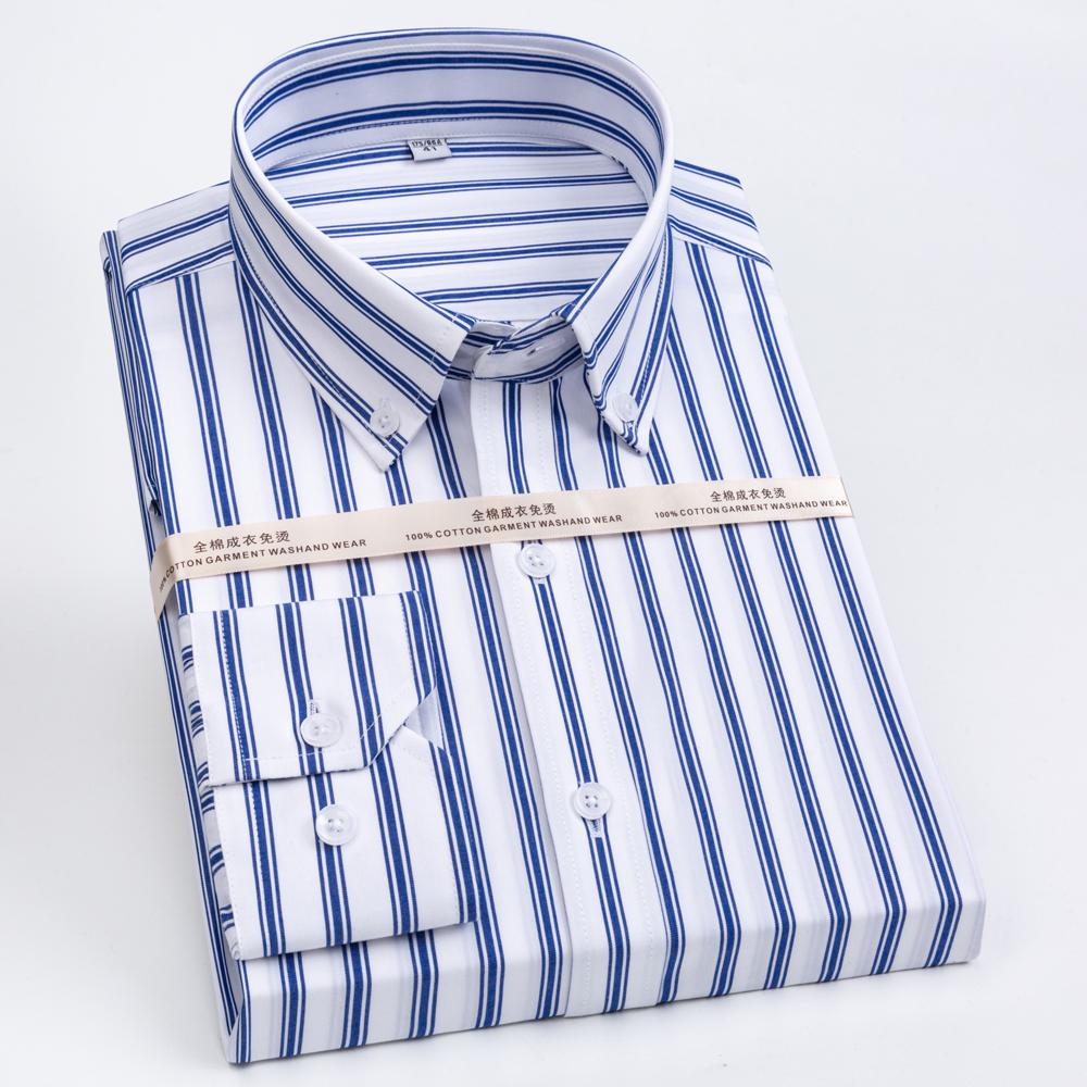 Мужская немнущаяся хлопковая рубашка в полоску с длинным рукавом, воротником с отворотом и съемными косточками для воротника, клетчатая, для бизнеса и офиса