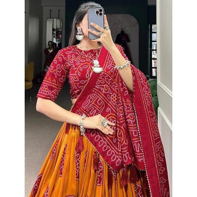 Женский комплект лехенга-чоли из туссарового шелка с принтом Бандхей, несшитая блузка