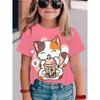 Новая летняя одежда для девочек, мультяшная милая футболка с графикой кошки, топы с коротким рукавом для девочек 4-6 лет, повседневная детская одежда