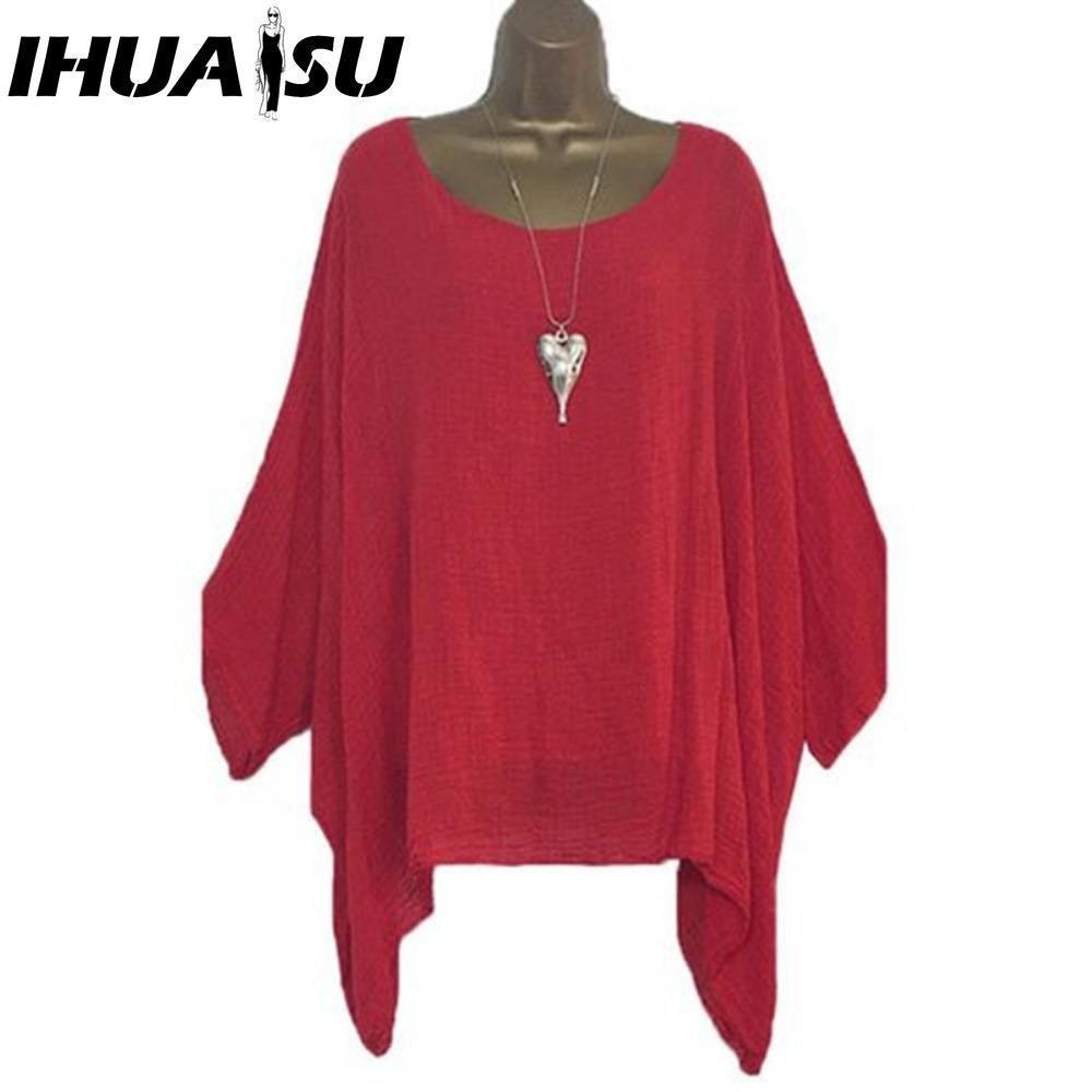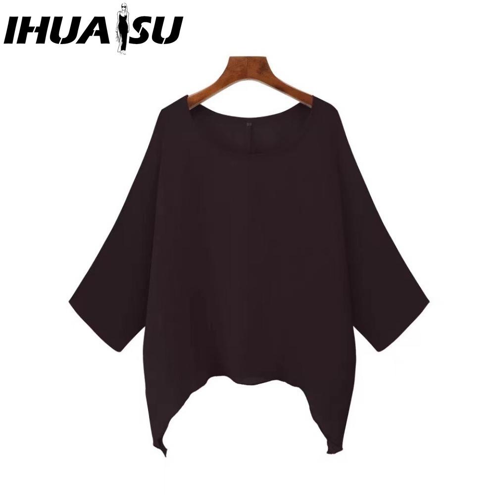 IHUASU Женская Мода Повседневные Однотонные Блузки и Рубашки с Принтом с Круглым Вырезом