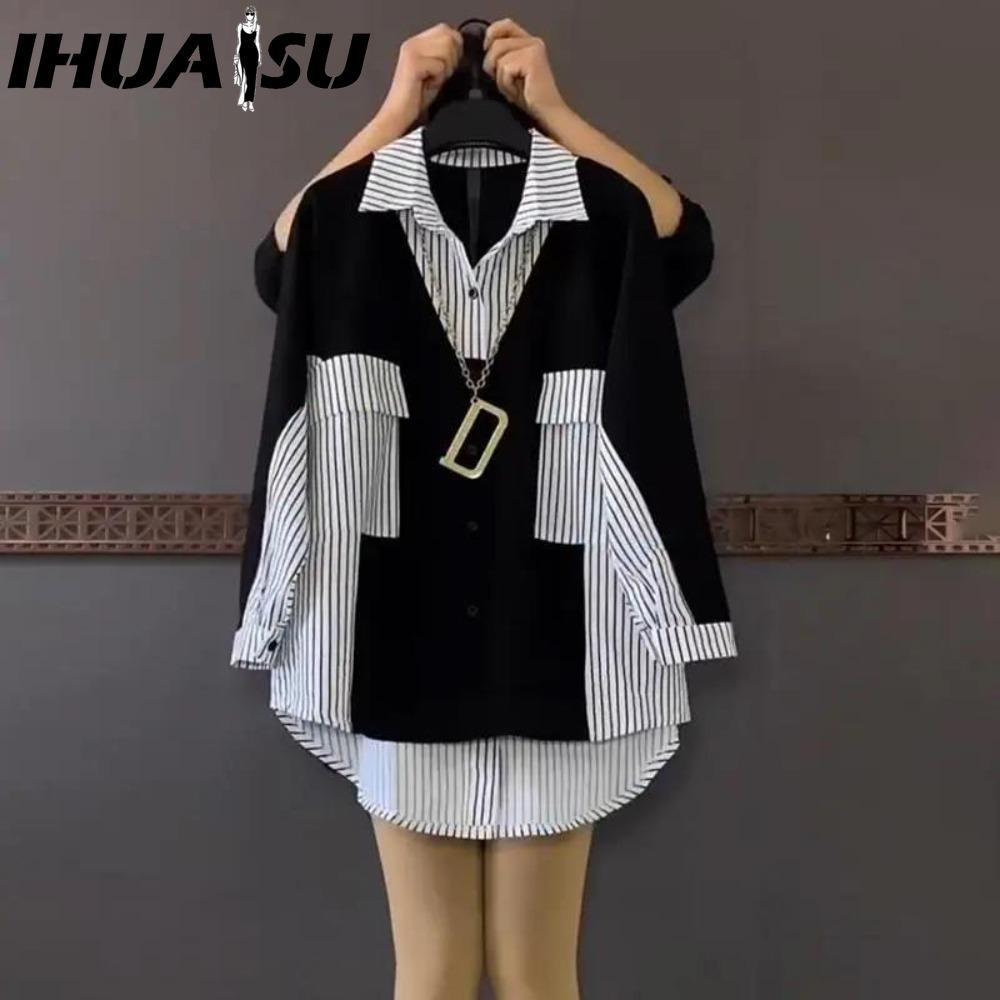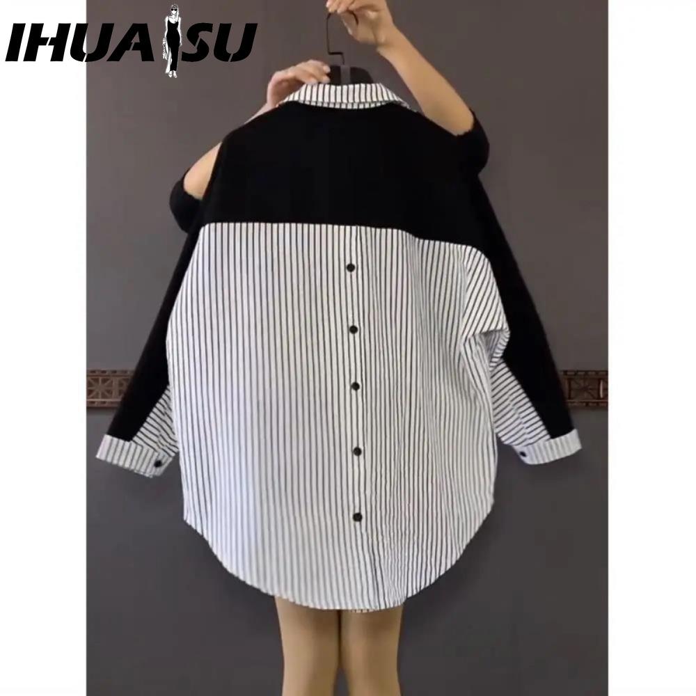 IHUASU Женские модные повседневные блузки и рубашки-поло с длинным рукавом