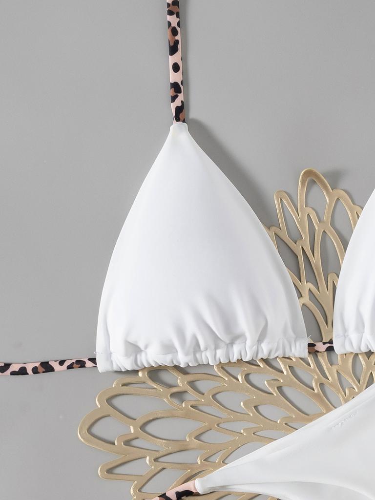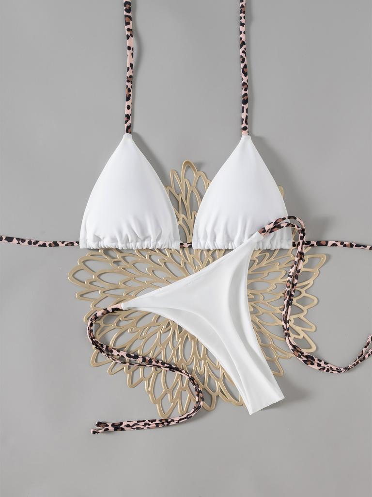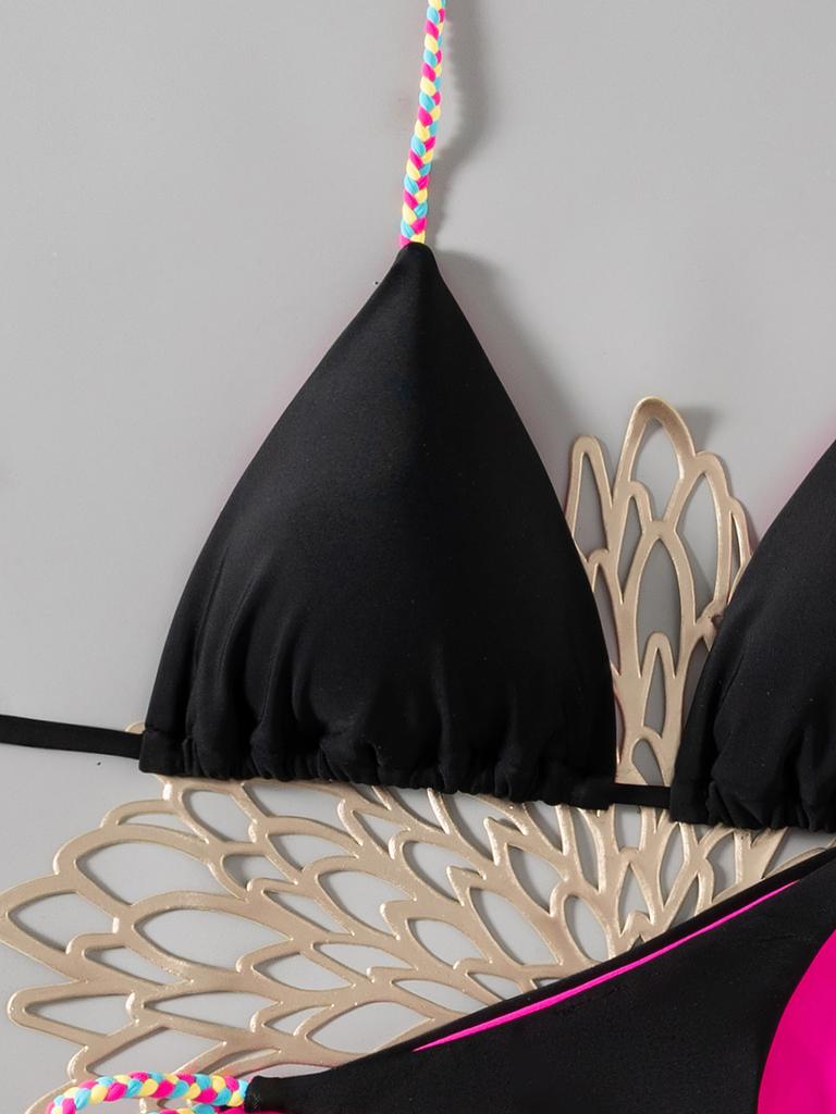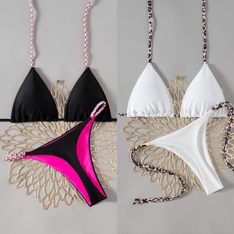 Контрастный ремешок Однотонные стринги Сексуальное бикини Раздельный купальник для женщин