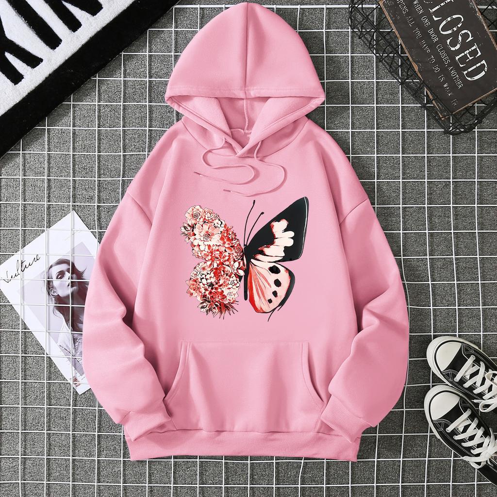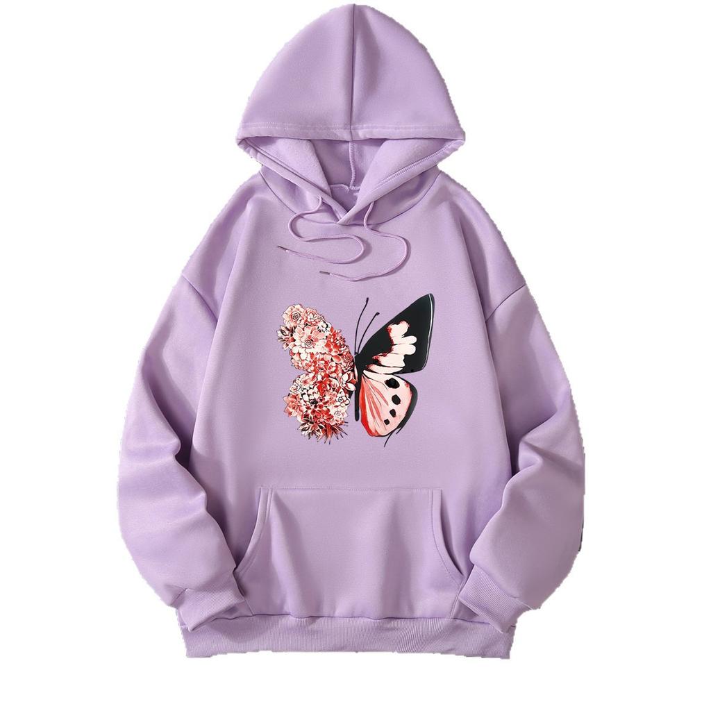 Новый европейский и американский модный периферийный флисовый свитер с капюшоном и принтом бабочек, мужской и женский спортивный